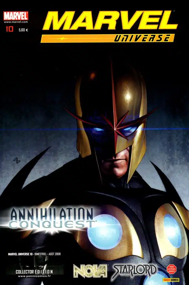 Annihilation : conquête se poursuit avec la mini-série complète de Starlord, écrite par Keith Giffen et dessinée par Timothy Green. Et on retrouve Nova et Gamora manipulés par les Phalanx, dans deux épisodes signés Abnett, Lanning et Chen.
