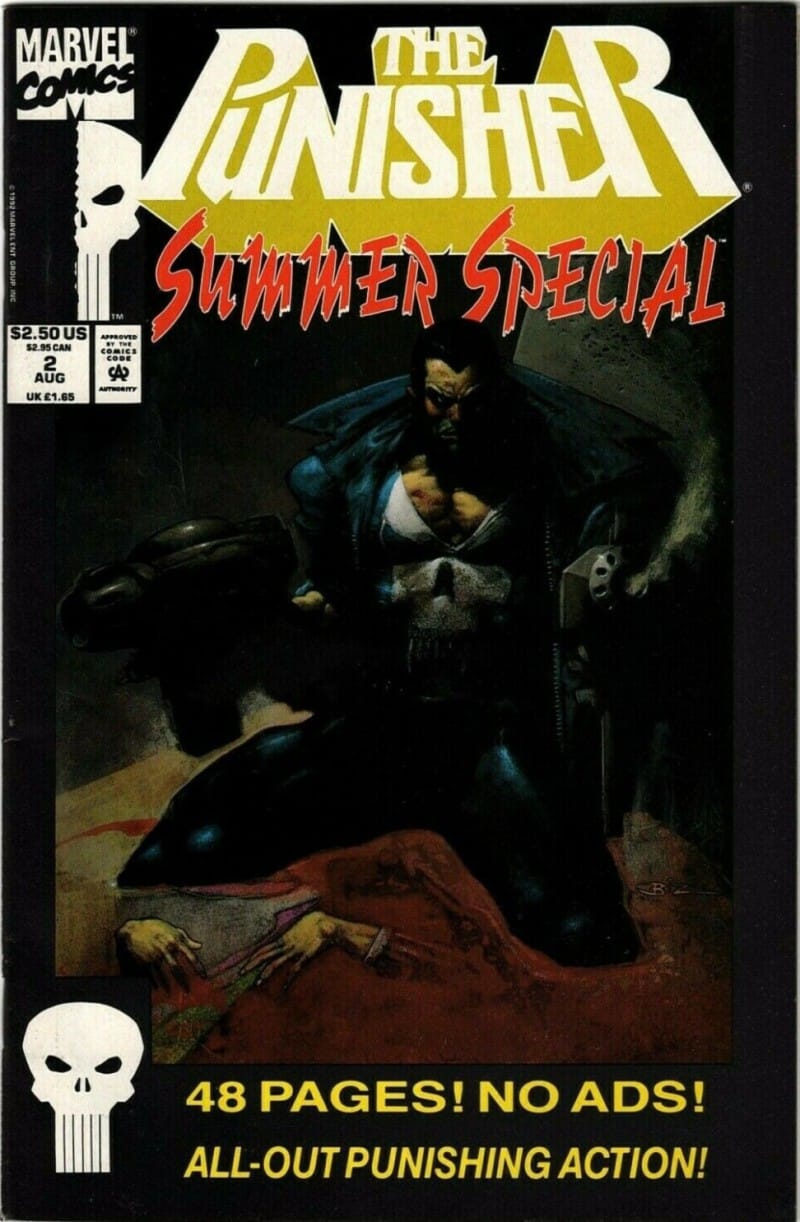 High Risk, script by Chuck Dixon, pencils by Flint Henry, inks by Terry Austin. A salesman tries to sell the Punisher some life insurance in the middle of a firefight.