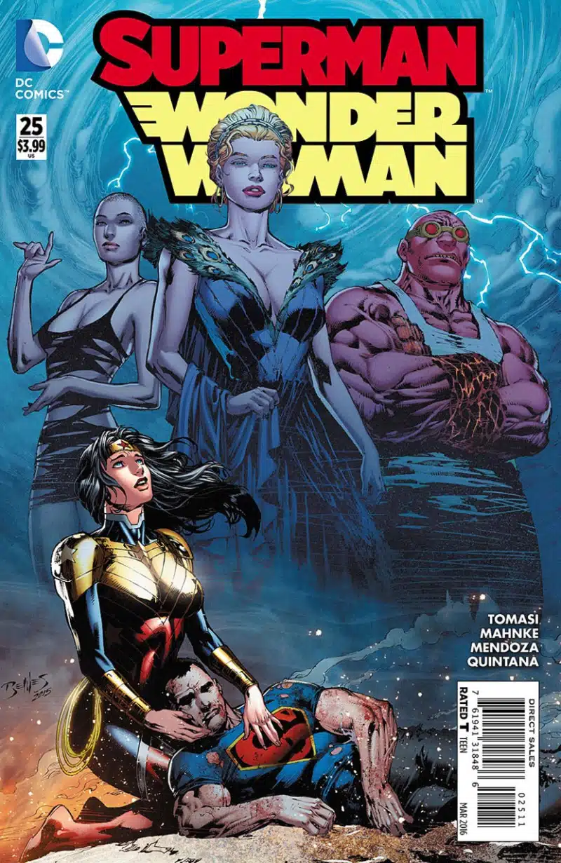 Diana presents a badly wounded Superman to the Greek Gods to see if they will restore him to his former self.