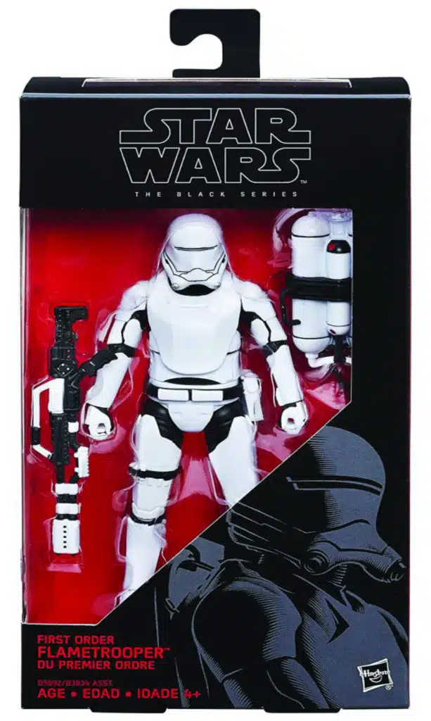Les Flametroopers sont armés d’un lance-flamme et provoquent l’effroi sur le champ de bataille, parfois même jusque dans les propres rangs du Premier Ordre.